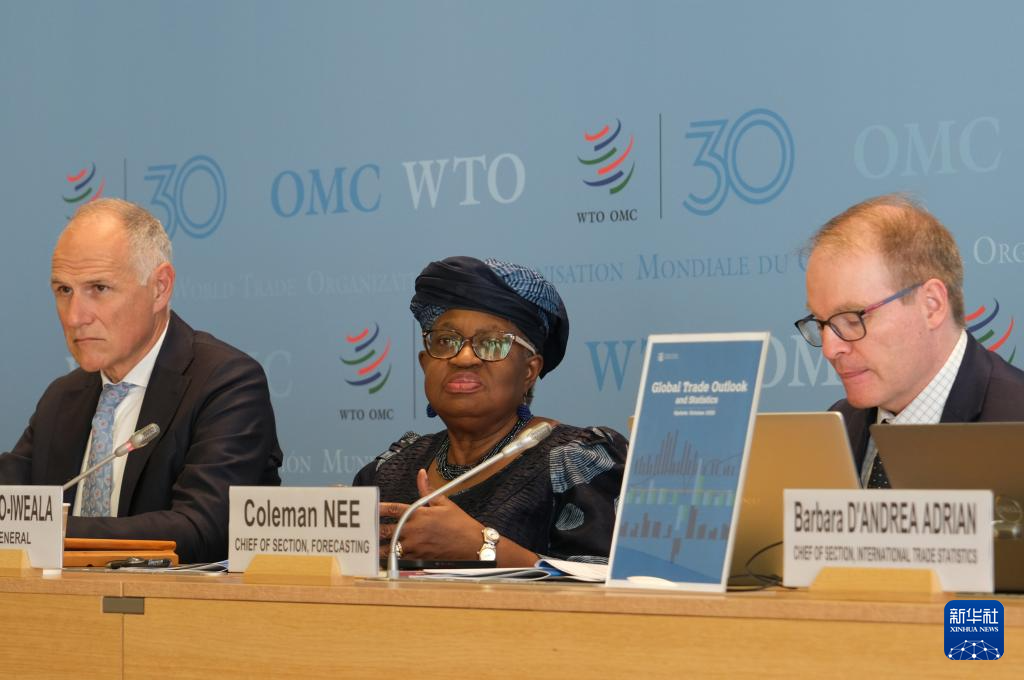 10月7日,在瑞士日内瓦世界贸易组织总部,世贸组织总干事伊韦拉(中)在新闻发布会上讲话。新华社记者马如轩摄 受货物贸易和劳务关系影响,服务贸易也不受关税直接影响。报告预计,国际服务出口增速将从2024年的6.8%下降至2025年的4.6%,2026年将降至4.4%。这是10月7日在瑞士日内瓦世界贸易组织总部发布的最新《全球贸易展望》报告的封面。新华社记者马如轩摄 世贸组织经济学家强调,贸易限制和不确定性政策正在向更多经济体和行业蔓延,造成重大下行风险。世贸组织总干事伊韦拉当天在新闻发布会上表示,尽管单边关税措施和贸易不确定性带来强劲阻力,但全球经济仍面临挑战。由于多边贸易体系提供的稳定性以及各成员针对关税变化采取的适当应对措施,整体贸易仍表现出一定程度的韧性。 10月7日,在瑞士日内瓦世界贸易组织总部,世贸组织总干事伊韦拉(左三)在新闻发布会上讲话。新华社记者 马如轩 摄 报道中,世贸组织将2025年全球贸易增长预测从8月份的0.9%上调至2.4%。报告显示,2025年上半年,全球货物贸易同比增长4.9%,全球贸易以KA美元同比增长6%。北美提前扩大进口以防止高关税、宏观经济状况改善以及人工智能相关智能需求攀升是推动增长的主要因素。